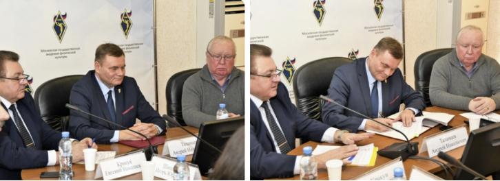 安德烈·尼古拉耶维奇校长介绍了莫斯科国立体育学院的办学发展历程、专业情况、师资情况、图书资料、科研成果、场馆设施和竞赛成绩等。他高度赞誉了两校的签约合作,并指出两校深化多领域交流合作,是符合两国教育事业、体育事业和两国和平发展的现实需要。